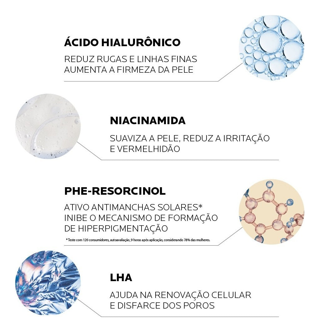 LHA: ajuda na renovação celular e disfarce dos poros.