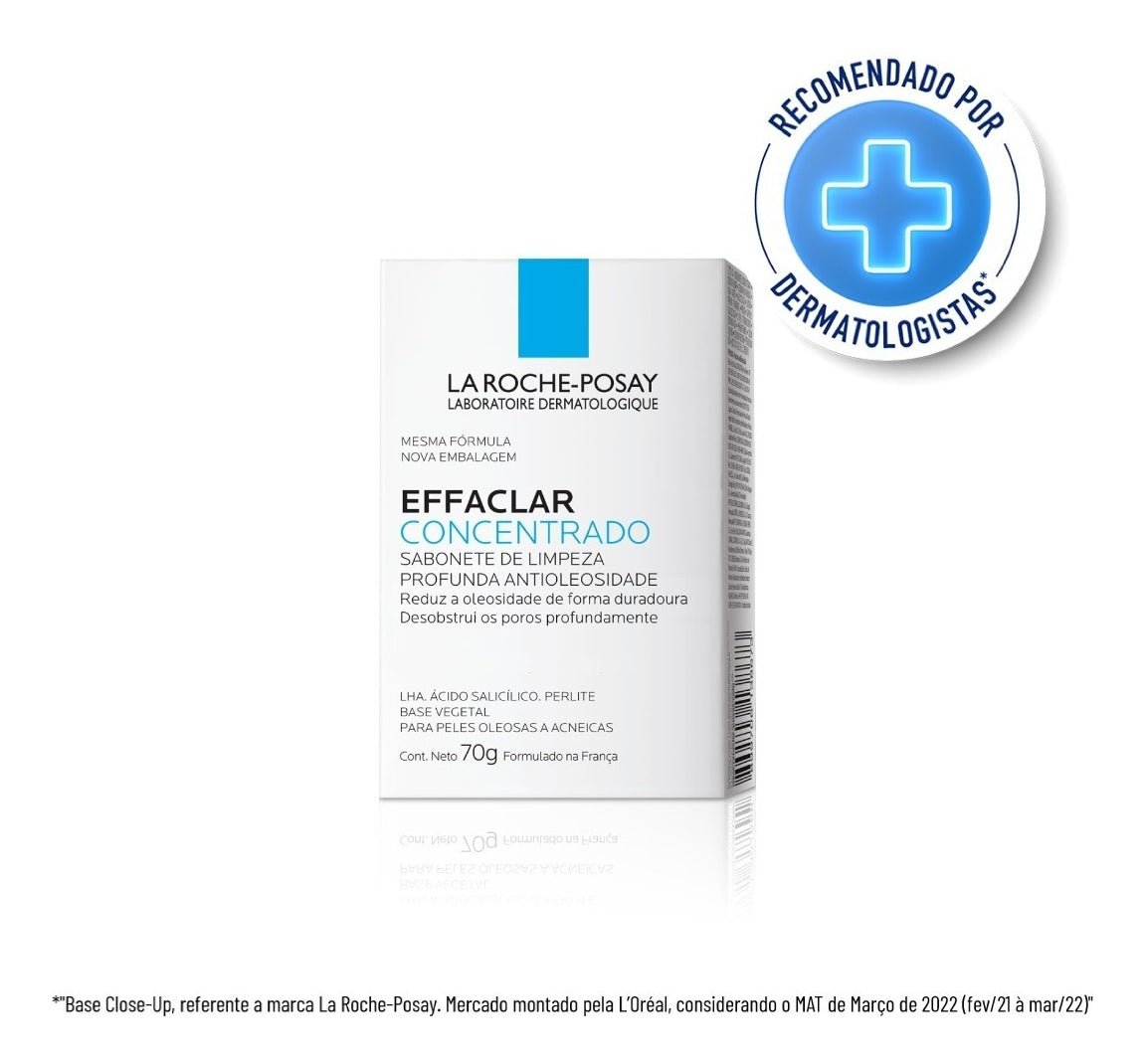 Sabonete em barra facial para peles oleosas e acneicas. La Roche-Posay Effaclar Concentrado controla da oleosidade e ajuda no cuidado antiacne.