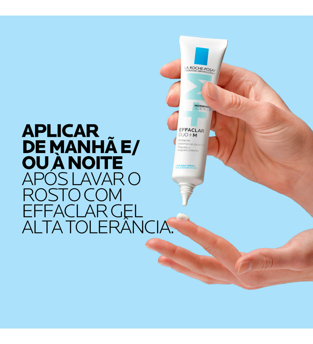 Tratamento antiacne para o rosto. La Roche-Posay Effaclar Duo+M equilibra o excesso de oleosidade, enquanto combate cravos e espinhas.
