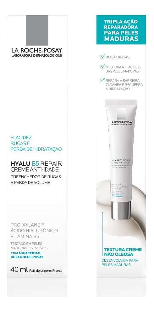 Redutor de Linhas para peles maduras e sensíveis. Com tripla ação reparadora, La Roche-Posay Hyalu B5 Repair firma e reduz a aparência de rugas e linhas finas, enquanto ajuda a redefinir o contorno facial.