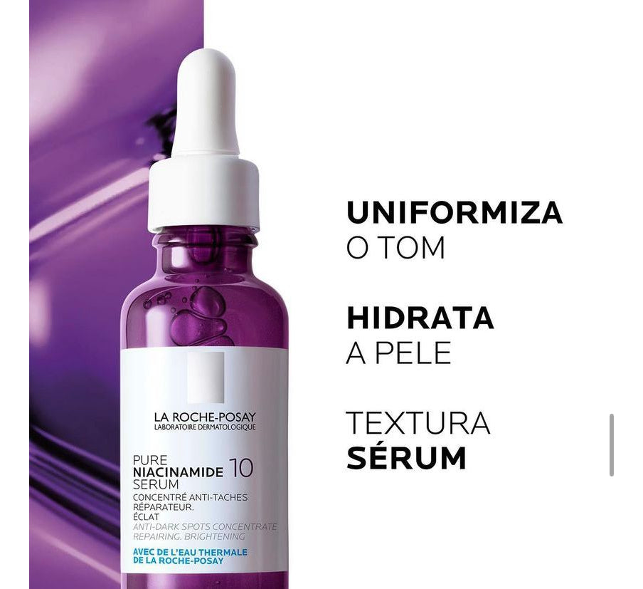 O Sérum Facial La Roche-Posay Pure Niacinamide 10 possui uma formulação de alta performance, enriquecida com 10% de Niacinamida Pura e Ácido Hialurônico. Ele atua na redução de diferenças de tonalidade, combatendo todos os tipos de marcas de hiperpigmentação e irregularidades da pele.